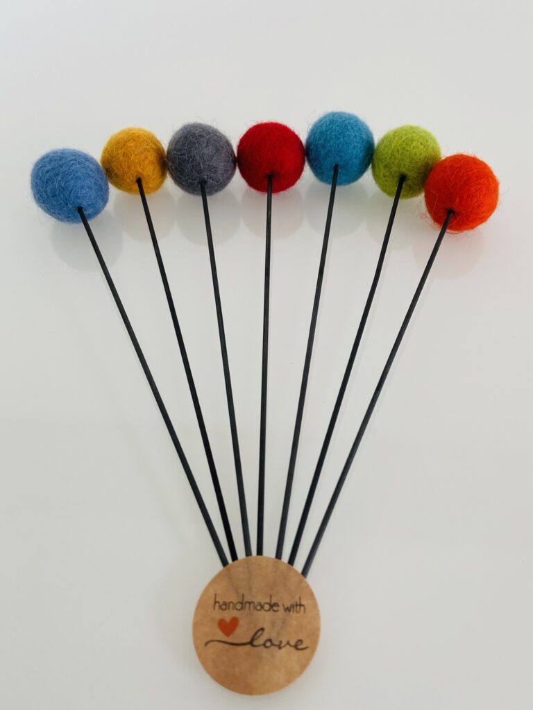 Filzkugelblumen sind handgefertigte Dekorationselemente, die aus Filzkugeln hergestellt werden. Die Kugeln werden zu einer Blume geformt und auf Drahtstiele befestigt. Filzkugelblumen gibt es in verschiedenen Größen und Farben, was sie zu einer vielseitigen Dekorationsmöglichkeit macht. Die Verwendung von Filz als Material macht Filzkugelblumen zu einer umweltfreundlichen Wahl, da Filz ein nachhaltiges und biologisch abbaubares Material ist. Filzkugelblumen können für viele verschiedene Zwecke verwendet werden, wie z.B. als Tischdekoration für Partys oder Hochzeiten, als Geschenke für Freunde oder Familienmitglieder oder als Dekoration für das Zuhause. Filzkugelblumen sind eine einzigartige und originelle Ergänzung für jeden Raum und können dazu beitragen, eine warme und gemütliche Atmosphäre zu schaffen.