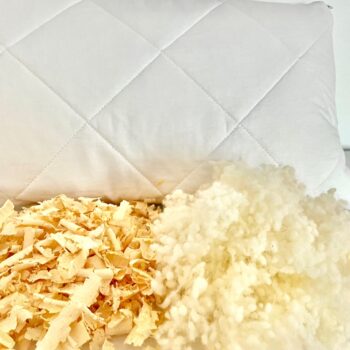 • Kopfkissen 40×60 cm, 100% Baumwolle, Füllung: Schurwolle & Zirbenspäne