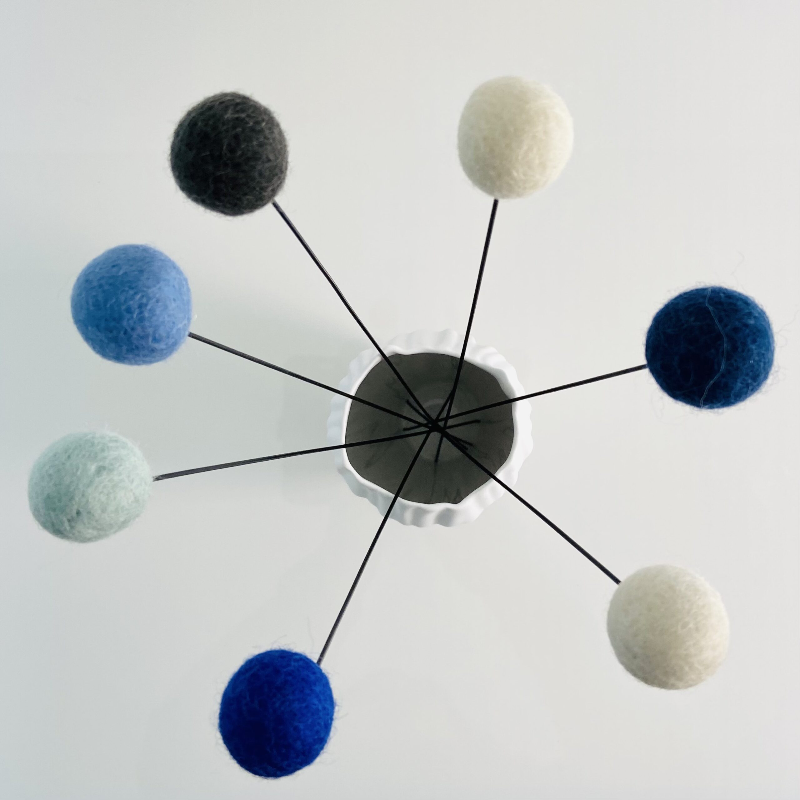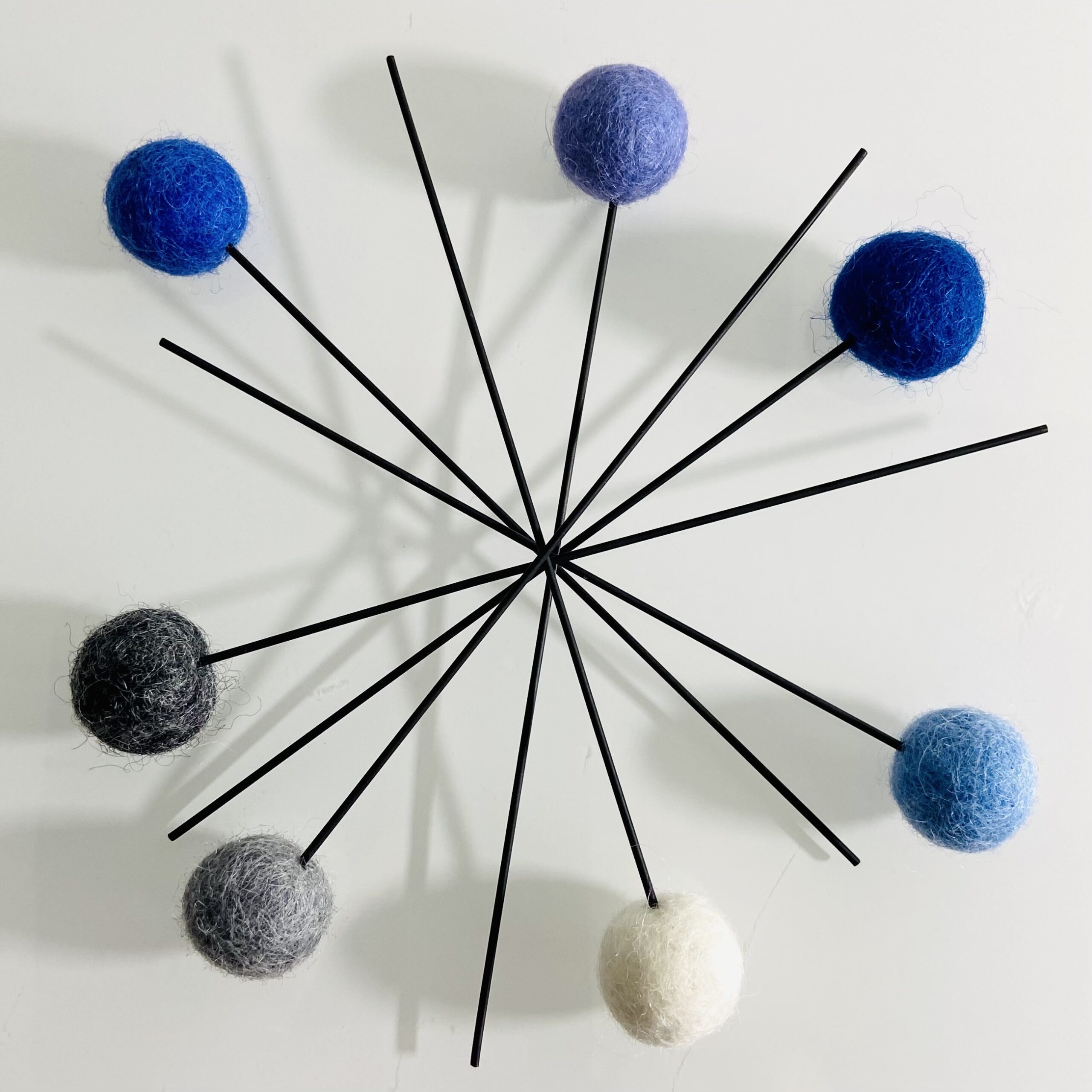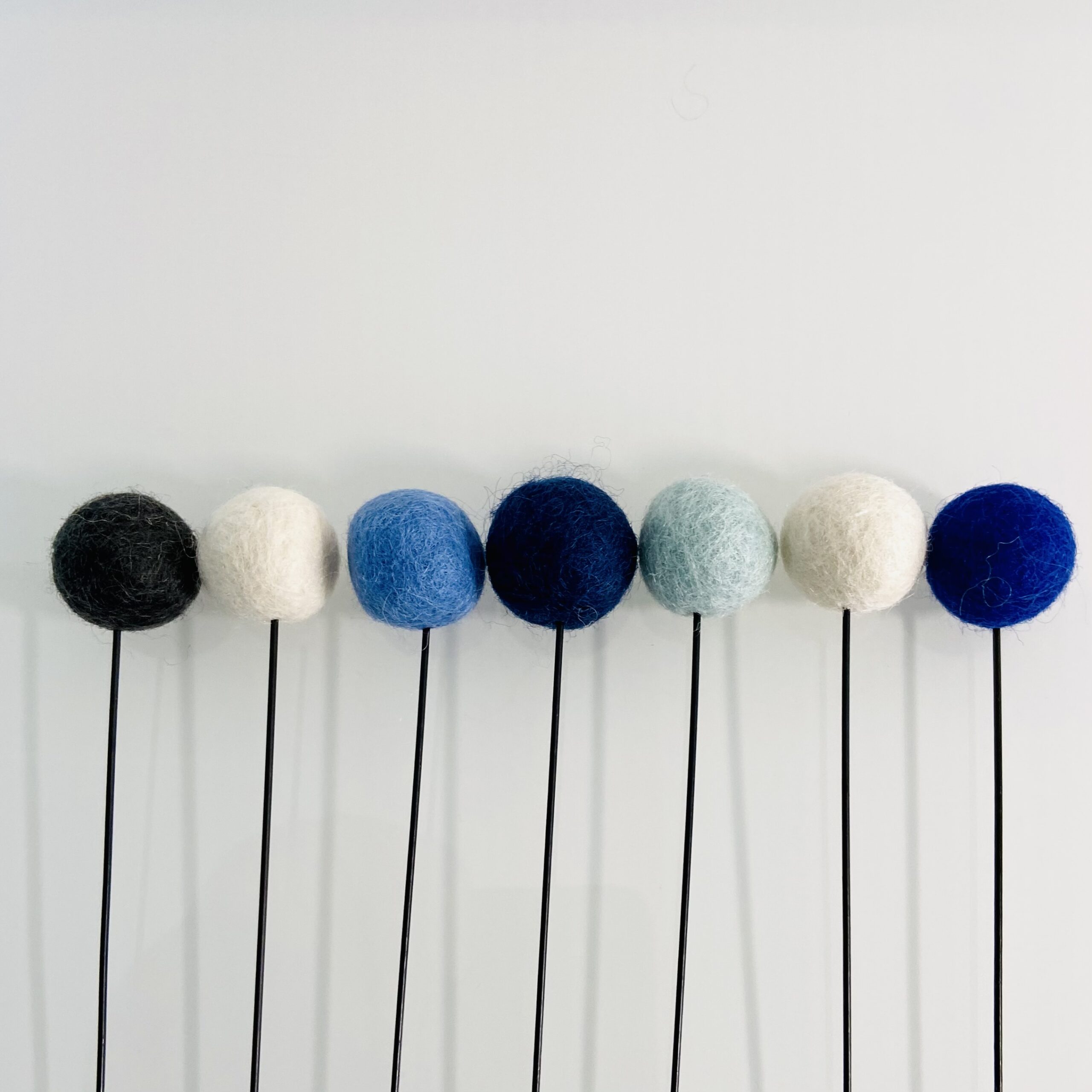 Filzkugel-Blumen 7er Set 30cm Stiellänge Blau-Weiss