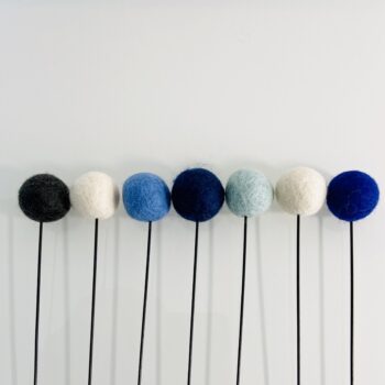 Der Stiel der Filzkugel-Blume besteht aus Metall und die Filzkugeln aus echter Wolle.